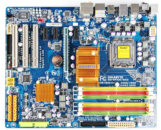 - Type of RAM - the type of RAM is very important. Before buying the motherboard you should make sure that the board takes the RAM you plan to get. You can get hybrid boards when new types of RAM are just being introduced, such as the Gigabyte GA-EP43C-DS3. My very first custom build (although not my own computer) had a hybrid DDR2 and DDR3 motherboard.