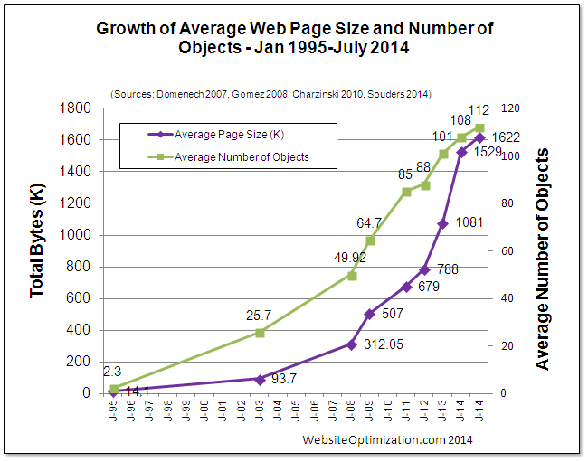 Prior to the mass marketing of smartphones, some web sites were pushing the size of 10MB per web page because not only were internet connections becoming faster but computers themselves could process more.