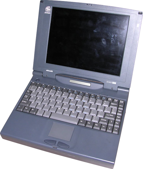 My first laptop was my dad's previous laptop, a 1994 Olivetti P75 which I got around 1997. It ran on Windows 95 when I received it, although when he had it ran on Windows 3.1 or something older.