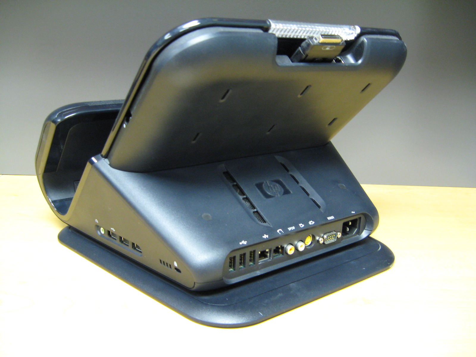 This expansion base added PbPrY component video, a VGA port, S-Video, composite video, a SPDIF RCA audio out, an RJ-45 connector, a headphone jack, a microphone jack and 6 USB 2.0 ports.