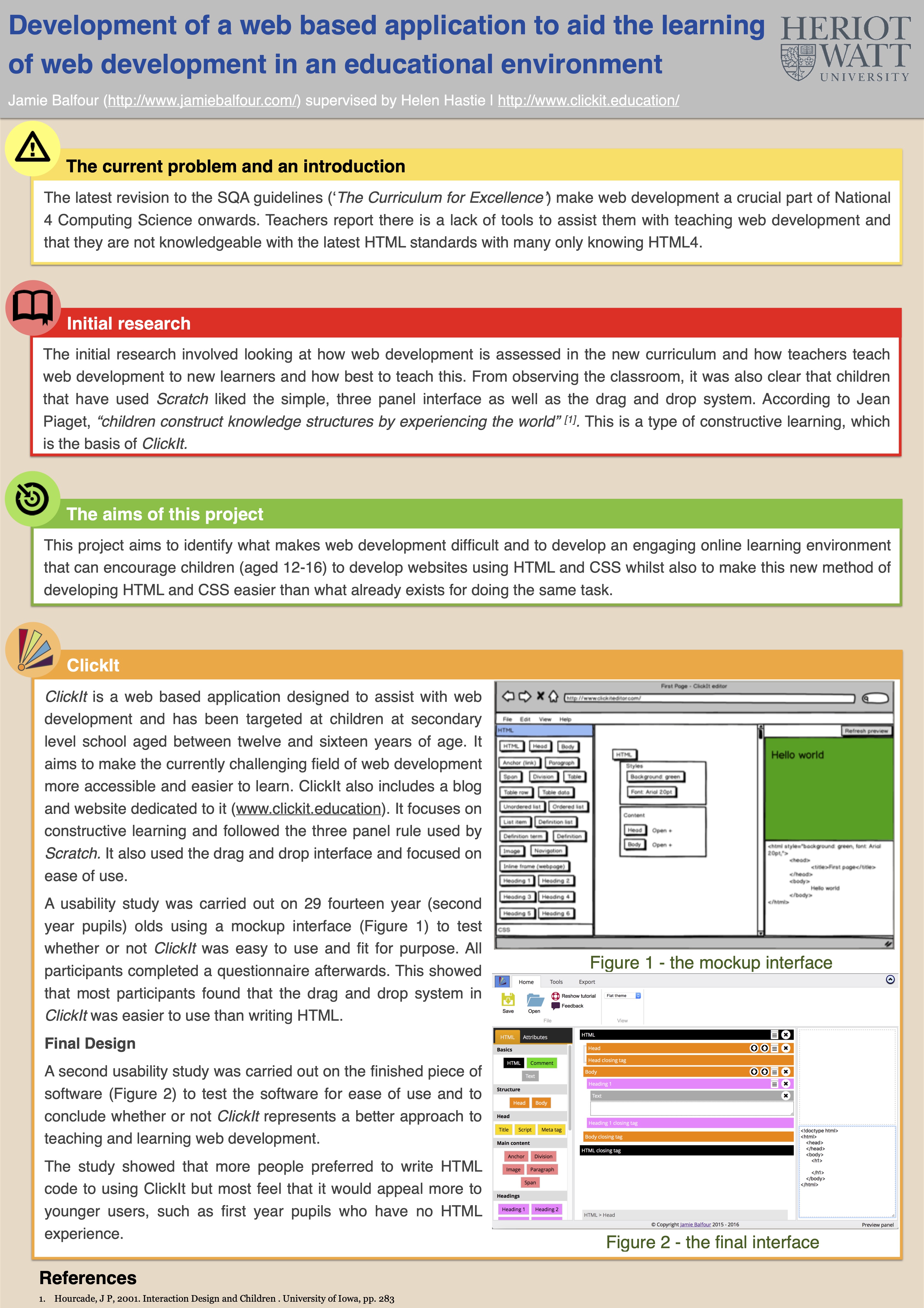 I'd like to thank everyone who has helped me at Heriot-Watt but I'd like to specifically thank a few people including Lorriane Vallance, Dr Tessa Berg, Dr Helen Hastie, Professor Rob Pooley, Professor Andrew Ireland, Dr Fiona McNeill, Dr Jenny Coady, Dr Santiago Chumbe and Professor Greg Michaelson. I'd also like to thank Professor Judy Robertson and Dr Sandy Louchart for their support in my first to third years, who have since moved to other universities.