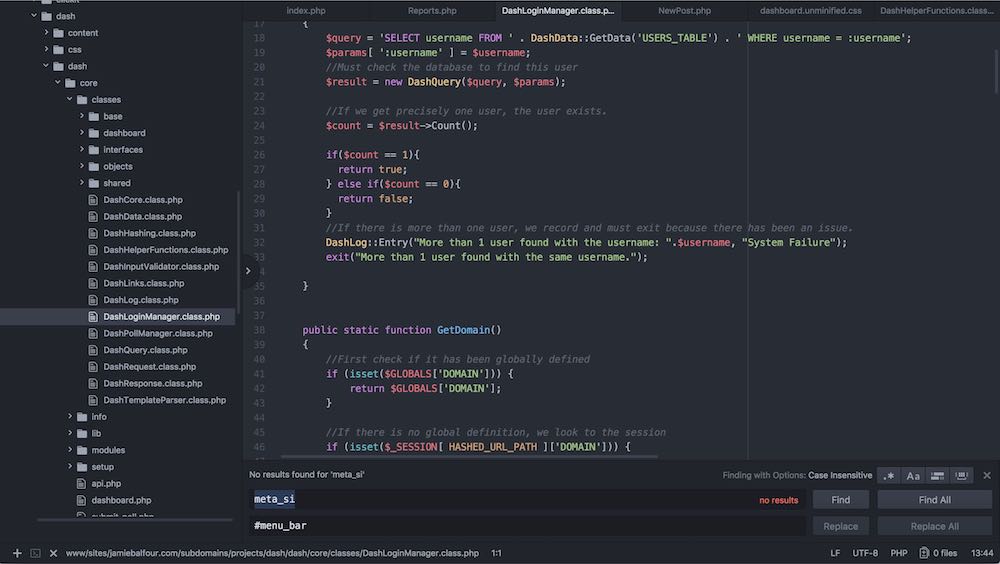 So I made another move, this time to Adobe Brackets. I jumped on the Brackets bandwagon when it was pretty young, and I loved it. Syntax highlighting is lovely, it's feature rich and it's open source. Unfortunately, this jump was too early - Brackets just didn't have everything I needed. In 2015, I started an Adobe Creative Cloud subscription. As a result I gave Dreamweaver a try and I liked it (looking back, I don't know why I liked it really other than the fact it had SFTP built in).
