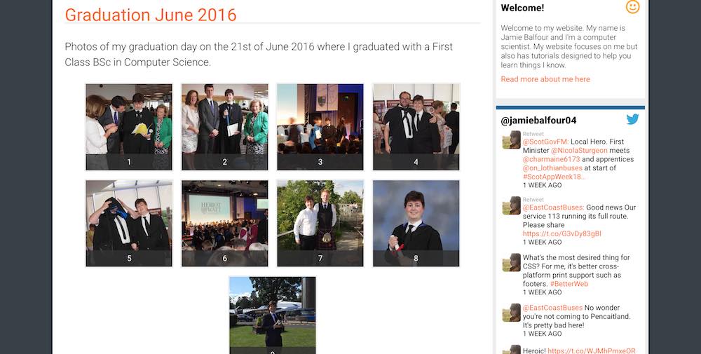 In essence, BalfGallery is formed of two of my components - a PHP scripts aptly named BalfGallery and a jQuery plugin called BalfPopup. The popup is used in multiple places on my website and replaced MagnificPopup earlier this year on my website. This was a big change and required a lot of my time to make BalfPopup actually useful. In comparison to the previous gallery, BalfGallery is lightweight, fast and it takes advantage of features of my own BalfPopup which make it really powerful.