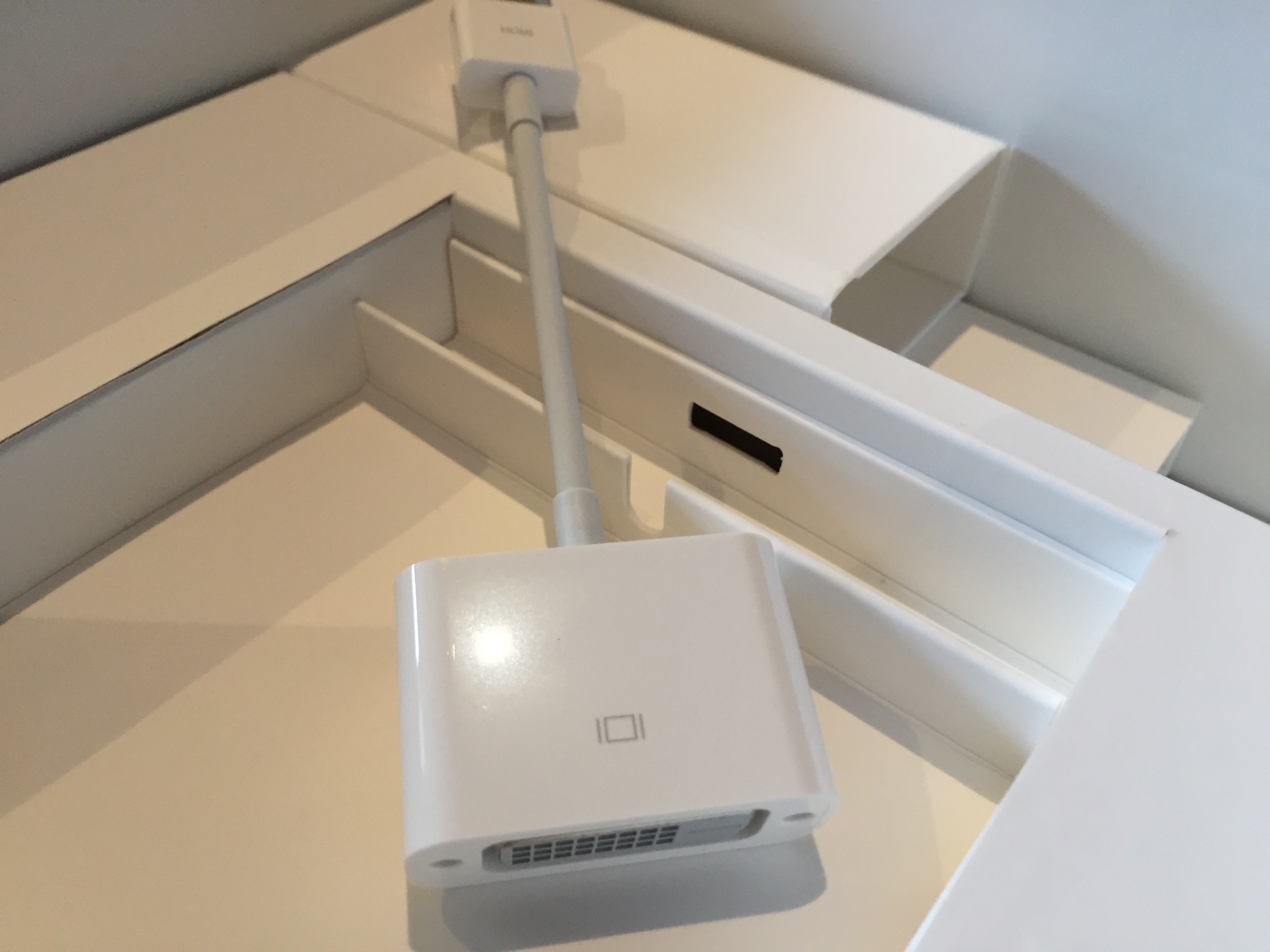 First, on the left, the Mac mini is a power jack. This connects straight to the Mac mini's built-in power supply unit.