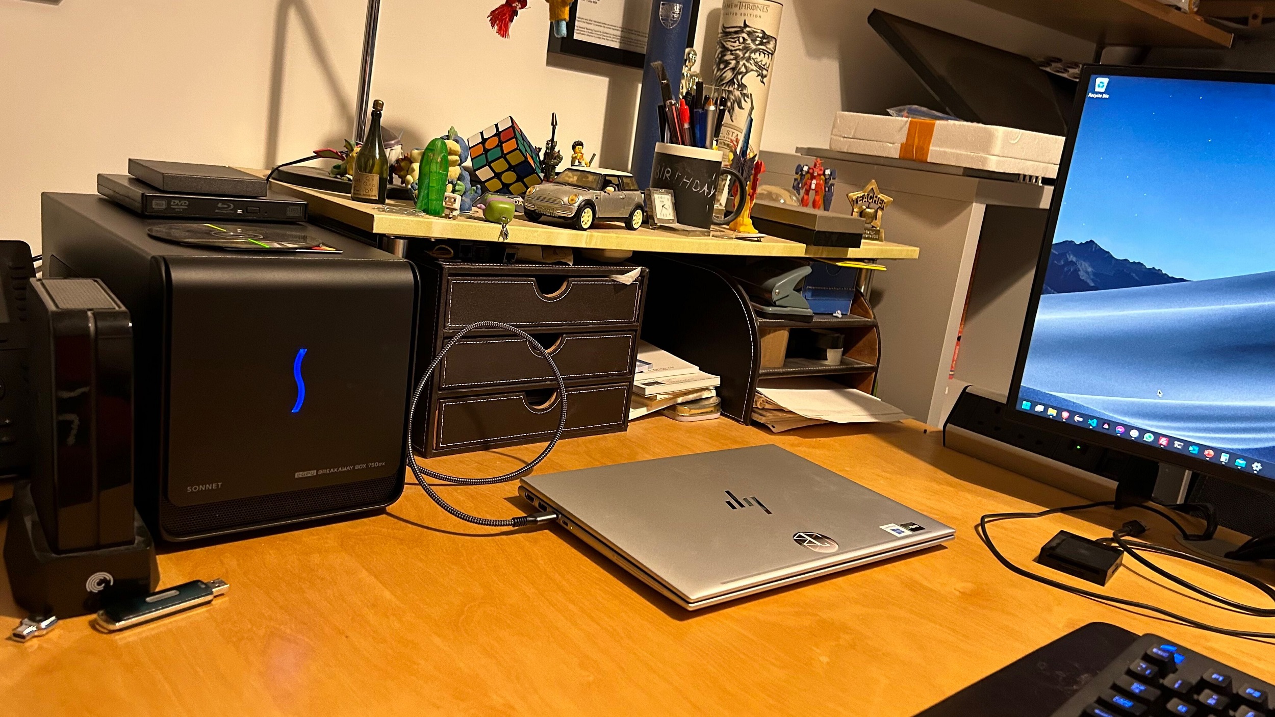 Instead, I have an eGPU enclosure with my desktop graphics card in it as well as my desktop monitor, keyboard and mouse and I will dock my G9 to give it better gaming performance. This was what I aimed to achieve with my Razer Blade Stealth back in 2017. It has been a major ambition of mine since I was around about 10 years old, suggesting when the ExpressCard standard came out that eGPUs would be fully possible by taking advantage of the 10Gbps PCI Express speeds that there we back then.