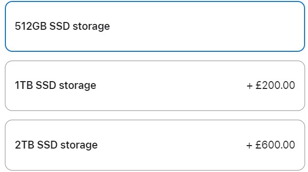 I mentioned earlier about the storage being less performant than an NVMe in my EliteBook, but on top of that, my EliteBook's NVMe drive costs £200, and it's a 2TB model. To get 2TB of storage instead of 512GB in the model I purchased, I'd have to spend £600 on top of the price of my MacBook Pro. It does not cost Apple anything near that to make the NAND chips for these computers.