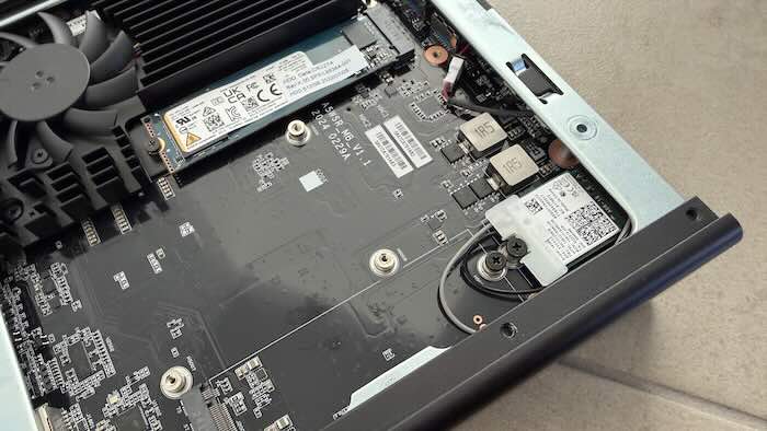 The MS-A1 also supports a U2 drive. In this picture you can also see the wireless card and two NVMe slots (one populated)