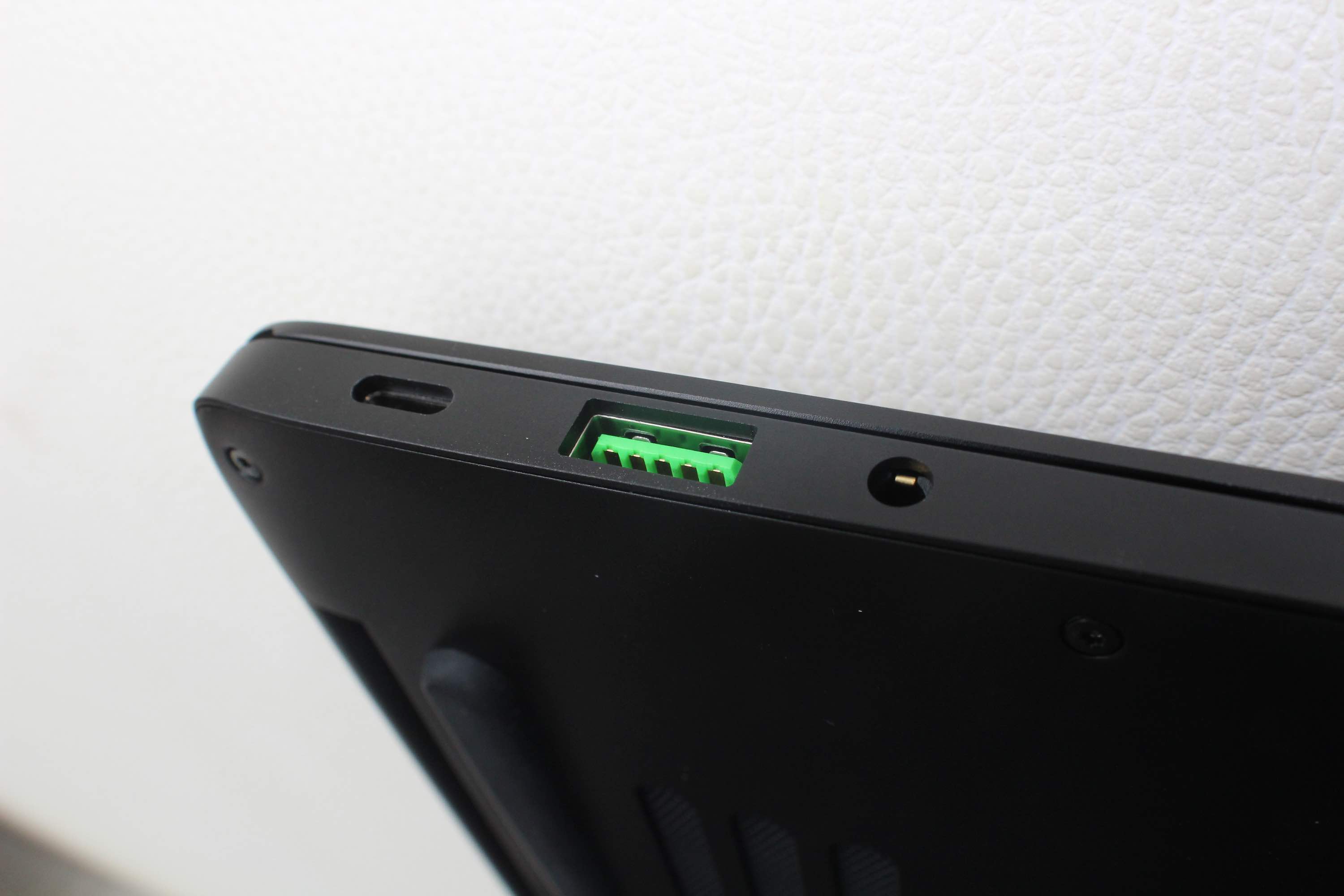 The back of the display features the standard three snakes Razer logo, backlit much like the Apple logo on the MacBook Pros (prior to the 2016 range of MacBook Pros, that is). USB ports on the device are coloured green, to match the green theme of the logo.