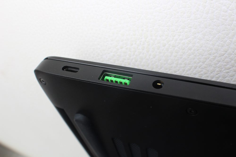 On the left side of the system, there is a single USB-C port that acts as both a USB 3.1 connection and a Thunderbolt 3 connection, offering speeds of 10Gbps for USB 3.1 and 40Gbps for Thunderbolt 3. This port also implements the USB-C Power Delivery specification, which means that the port also acts as the Blade's charger port. As well as this, there is a single USB 3 Type A connector and a headphone jack.