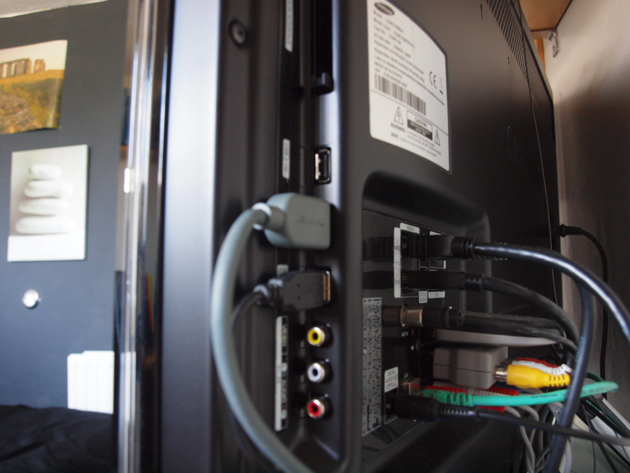 So I've been going a bit about my old TV. Well let's take a little look at the C750 now. The C750 boasts a few really good features. The first, this is not a TV. This TV has become something different. The menu on the M87 vs. the C750 shows this. It is also very well graphically rendered compared with the M87. This immediately sends out signs that Samsung has devised its menu system to one systematically design menu, that is widespread across their range. The first really good feature about the television is its inclusion of 4 HDMI ports. TVs until quite recently featured a measly three ports, which was not enough. Even with the four I still have to use a splitter, but it is more organised now; one HDMI for the computer, one for the AV Receiver, one for the DVD recorder and one for the splitter which connects to the games consoles. HDMI provides the best way of connecting HD devices and it really is amazing picture and sound quality that you get from these devices. The next really amazing feature (our other TVs; the Samsung LE40B6000 and LE40B8000 both also feature this) is USB. I'm not a fan or supporter of USB due to its lack of a tree topology, but for a TV doing what it's doing, it's a welcome feature. The USB port allows you to plug in an external USB flash drive or USB hard drive and watch the films, pictures or listen to the music on it. There are two USB ports featured on this device, on the right hand side. The most advantageous use of USB though is that you can connect an external hard drive (as I have done) and allow the TV to record on to it - something which is really useful. It can also use a feature called TimeShift which allows you to rewind, pause and fast forward (only to live TV obviously) live TV. As it features two ports, you can have a hard drive plugged in all the time and leave one free so you can plug in USB flash drives or even charge a phone using the other.