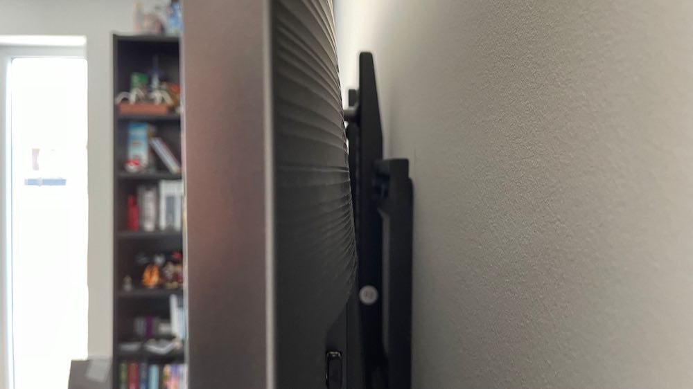 The back of the NU7470 is quite basic with very few screws on it - quite nice. Connectivity for the TV is all on the side which is good if you are wall mounting it like this
