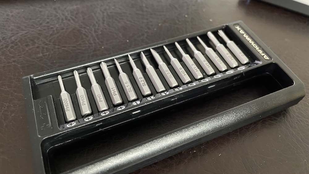 The SES MINI comes with a large selection (28 bits) of different screwdriver pieces that you can choose from, ranging from standard Phillips to TORX (which I specifically needed). Further to this, these can be magnetised straight from the case (although they were pre-magnetised anyway).