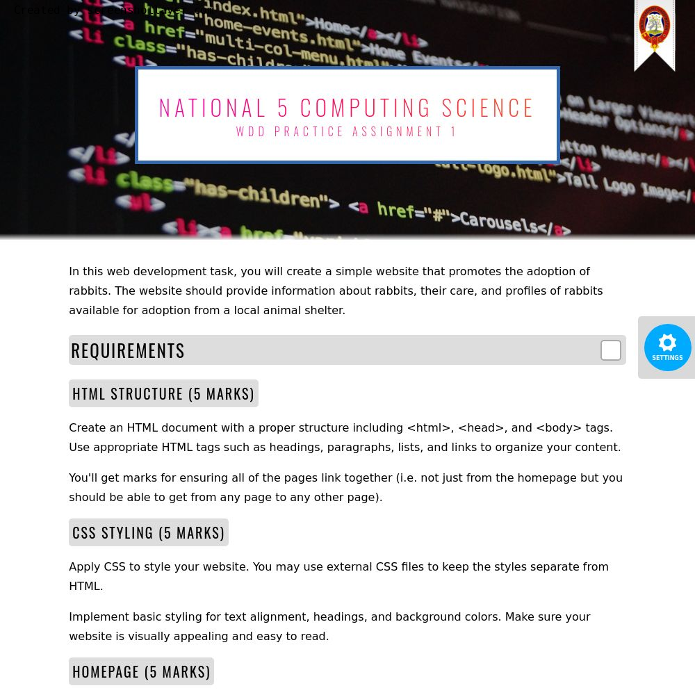 National 5 Computing Science : Web Design and DevelopmentPractice Assignments