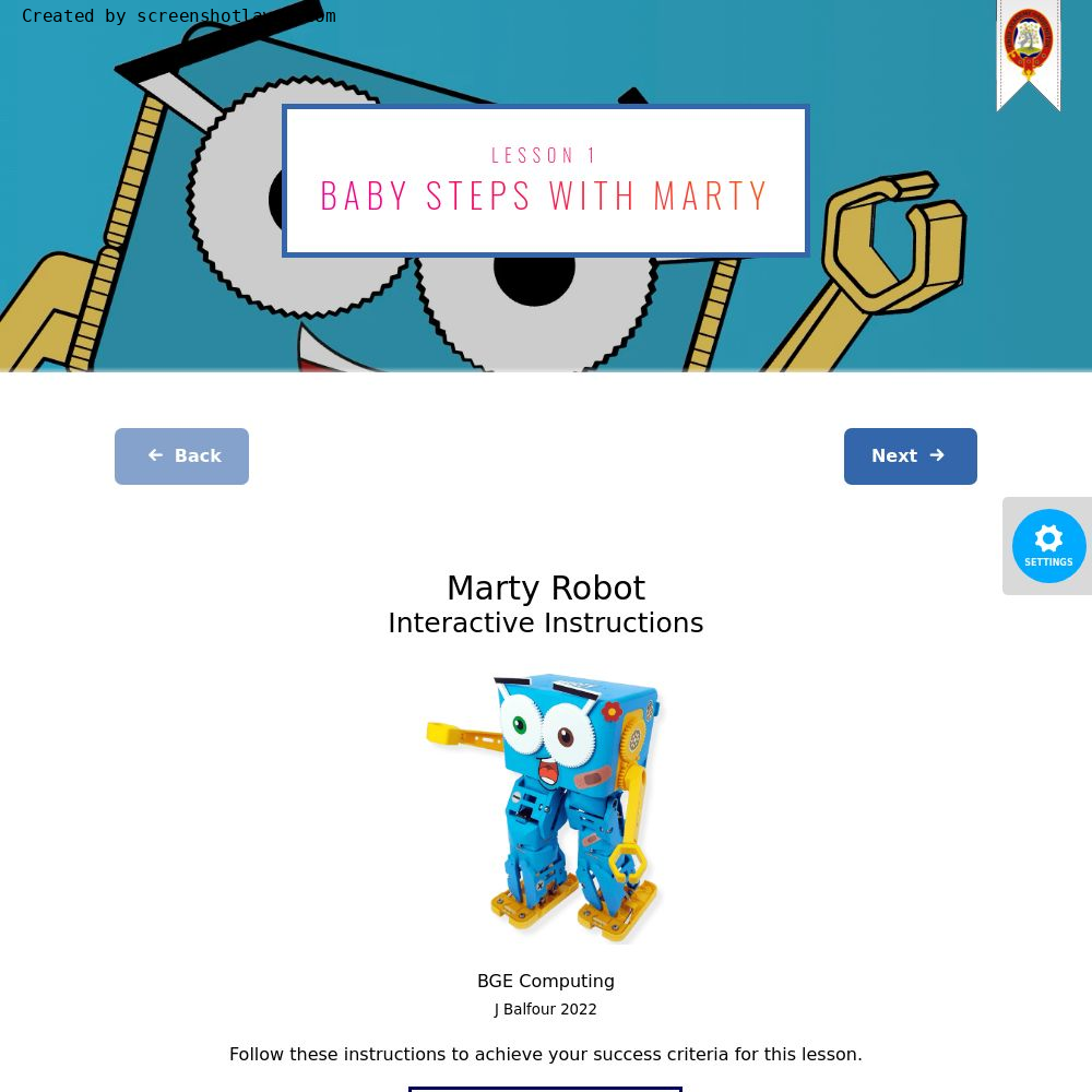 S1 Computing : Marty RobotLesson 1 - Baby Steps with Marty