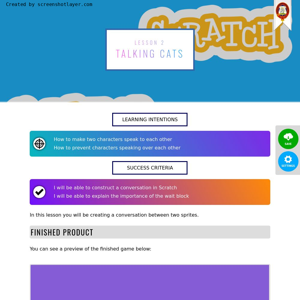 S1 Computing : ScratchLesson 2 - Talking Cats