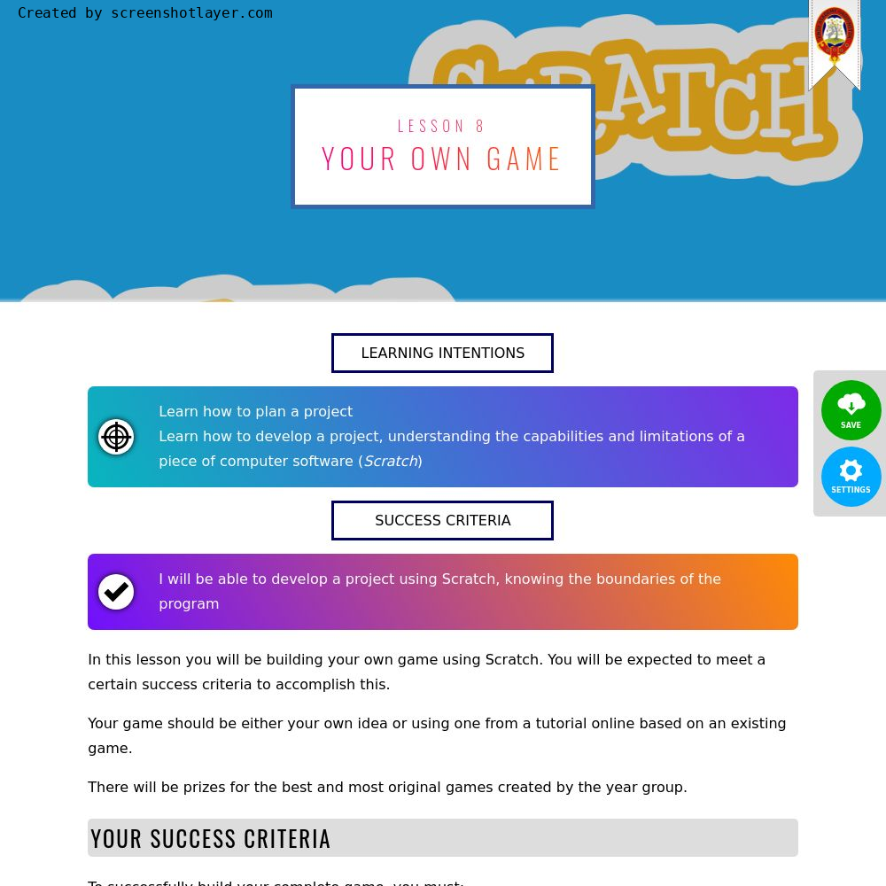 S1 Computing : ScratchLesson 8 - Scratch Projects