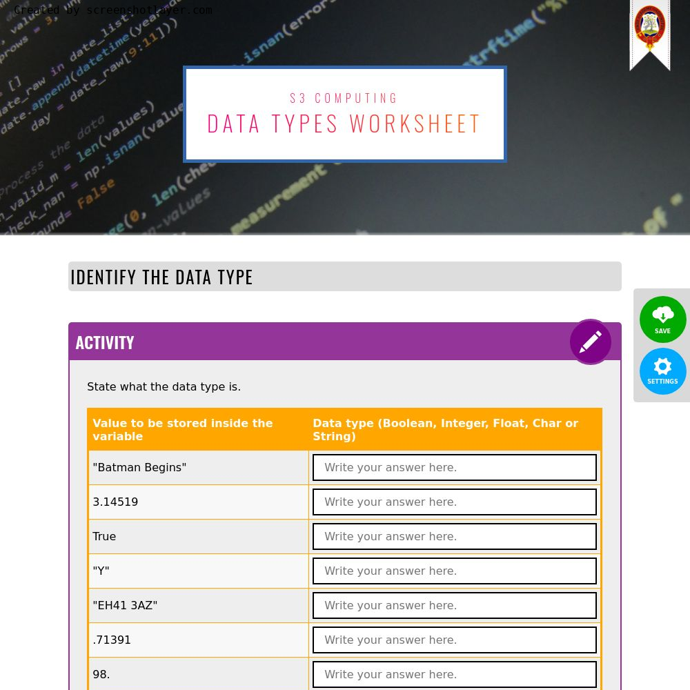 S3 Computing : Software DevelopmentData Types