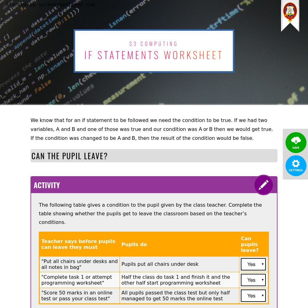S3 Computing : Software DevelopmentIf statements